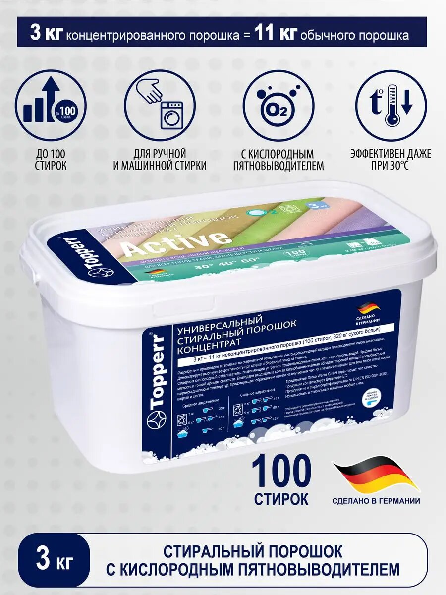 Topperr Стиральный порошок "Active", концентрат, универсальный, 3 кг