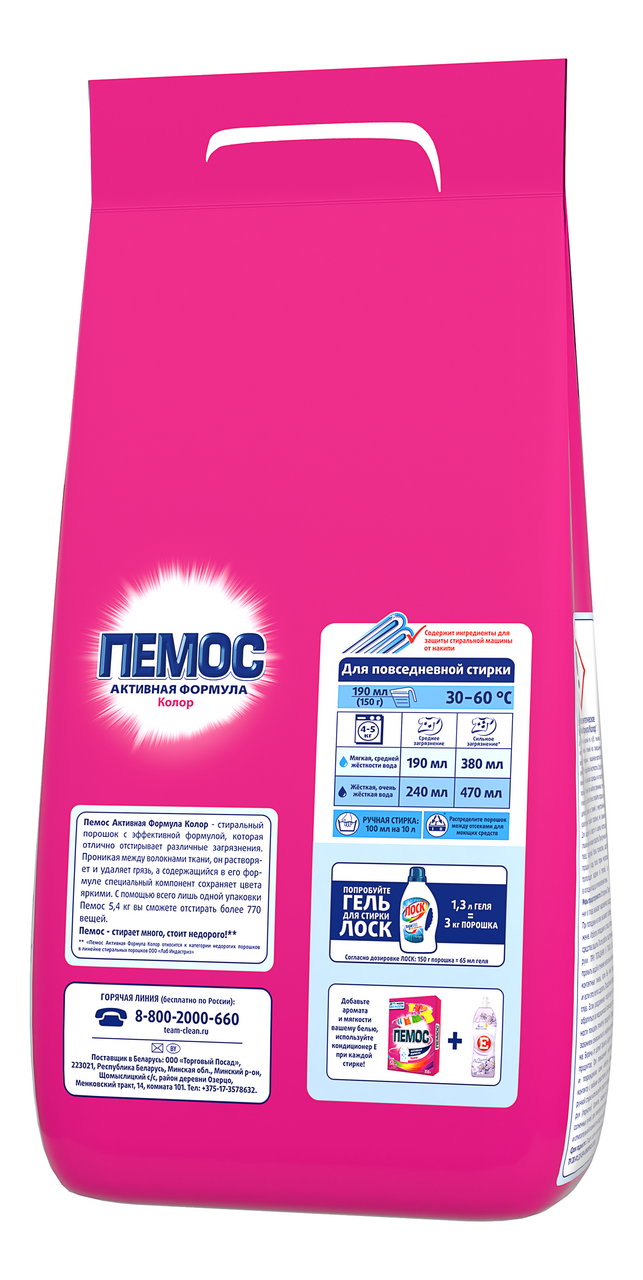Купить Стиральный порошок Пемос, 5.4 кг, автомат, для цветного белья, Color