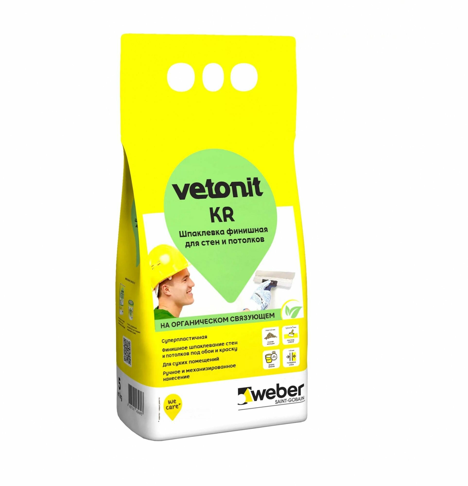 Шпаклевка (шпатлевка) Вебер Ветонит КR финишная белая для выравнивания стен и потолков, под обои, под окраску 5 кг
