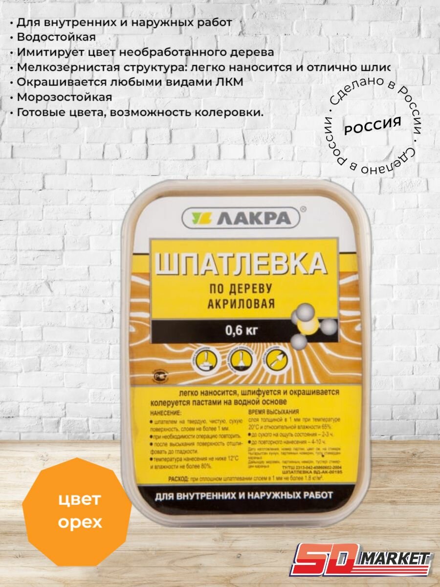 Купить шпатлевка готовая лакра по дереву 0,6кг орех, арт.ШПорех0,6