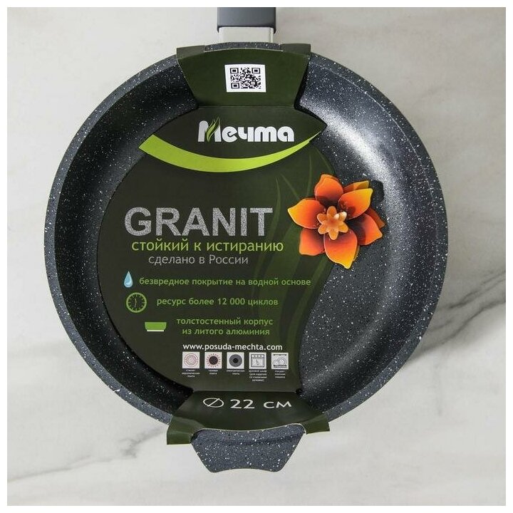 СохранитьСковорода "Мечта" «Гранит», d=22 см, пластиковая ручка, антипригарное покрытие, серый интересное: