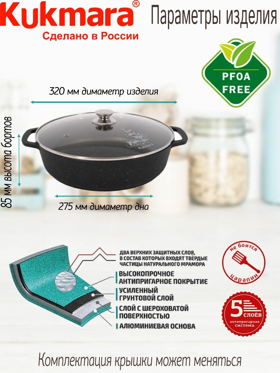 Купить Сотейник Kukmara Темный мрамор 32см со стеклянной крышкой (смт3281а) .