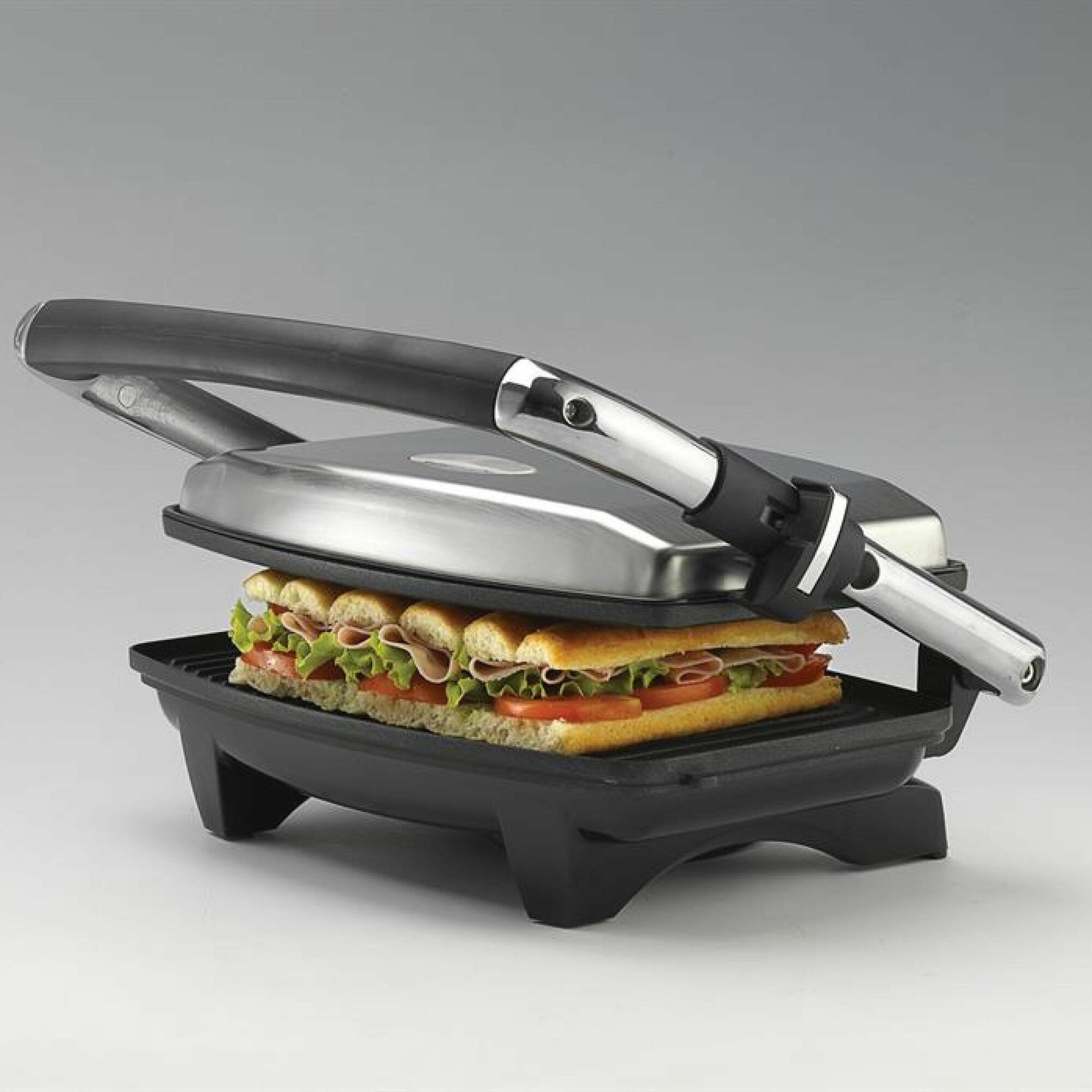 Электрогриль DOMFY Metal DSM-EG502, черный и серебристый