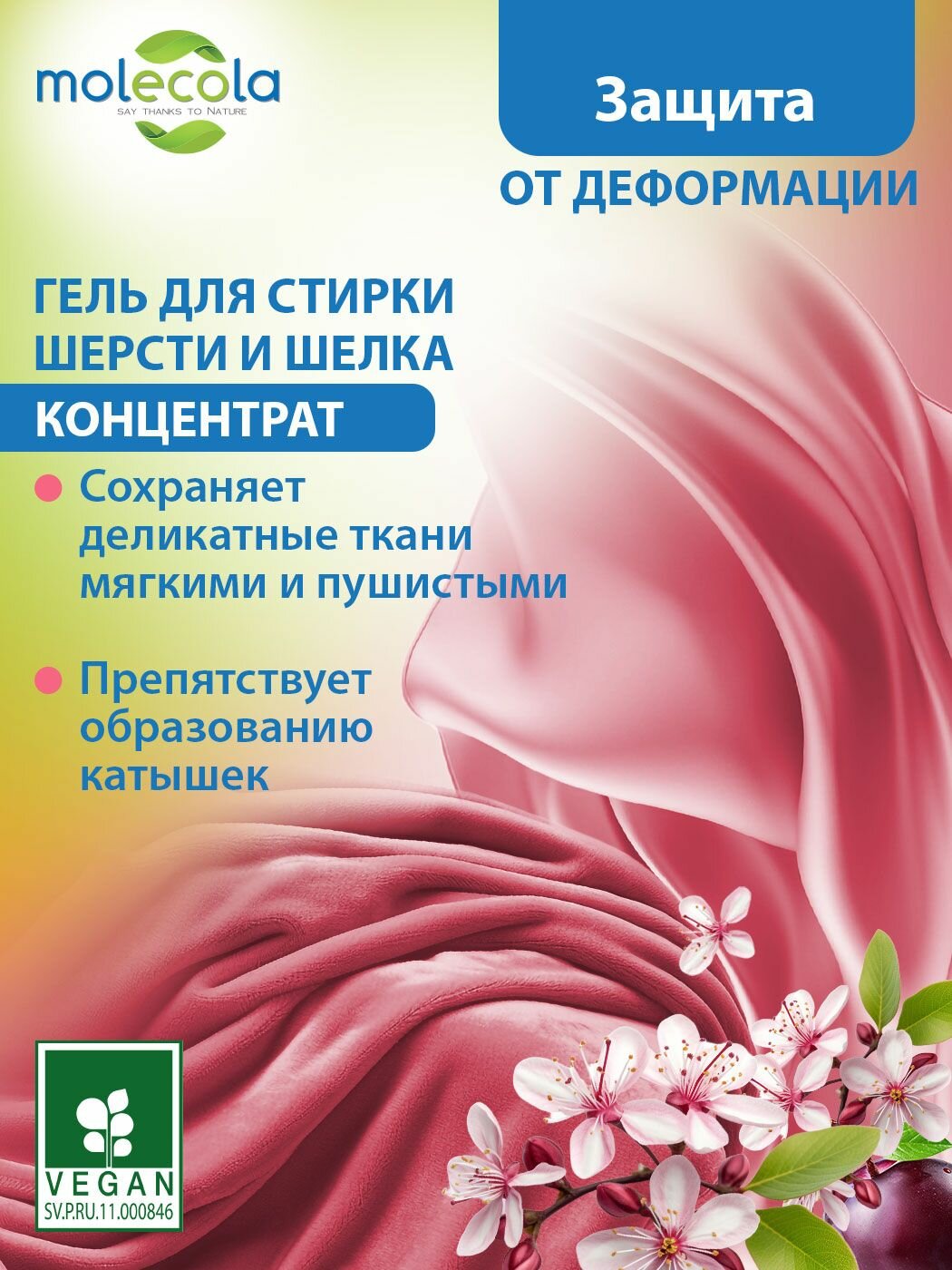 MOLECOLA Гель для стирки шерсти и шелка Цветы горной сливы, 1л