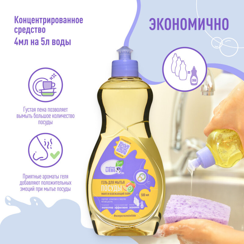 MEINE LIEBE Гель для мытья посуды Манго и освежающий лайм, концентрат, 500 мл