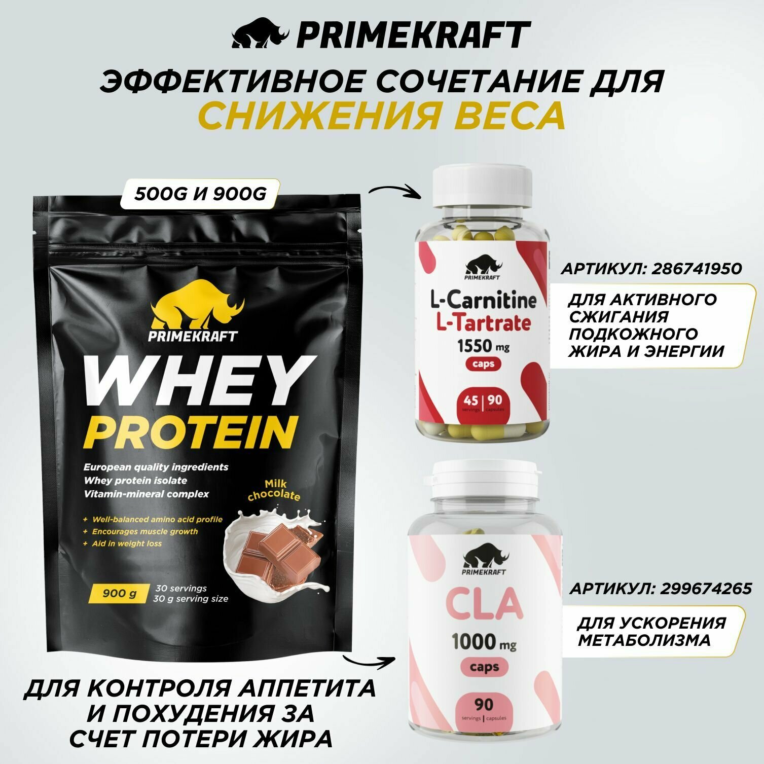Сывороточный протеин Whey Protein Prime Kraft 500 г (Молочный шоколад)