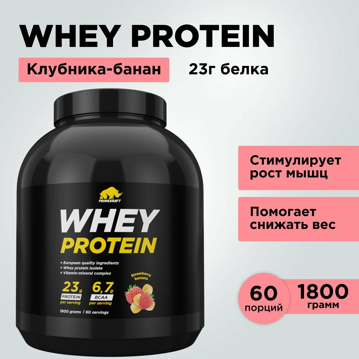 СохранитьСывороточный протеин Prime Kraft Whey Protein - 1800 грамм(клубника-банан) интересное: