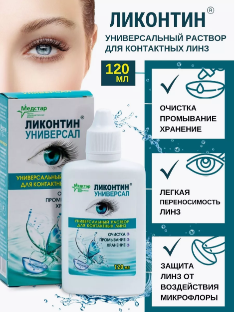 Раствор для контактных линз Медстар Ликонтин - Универсал, 120 мл