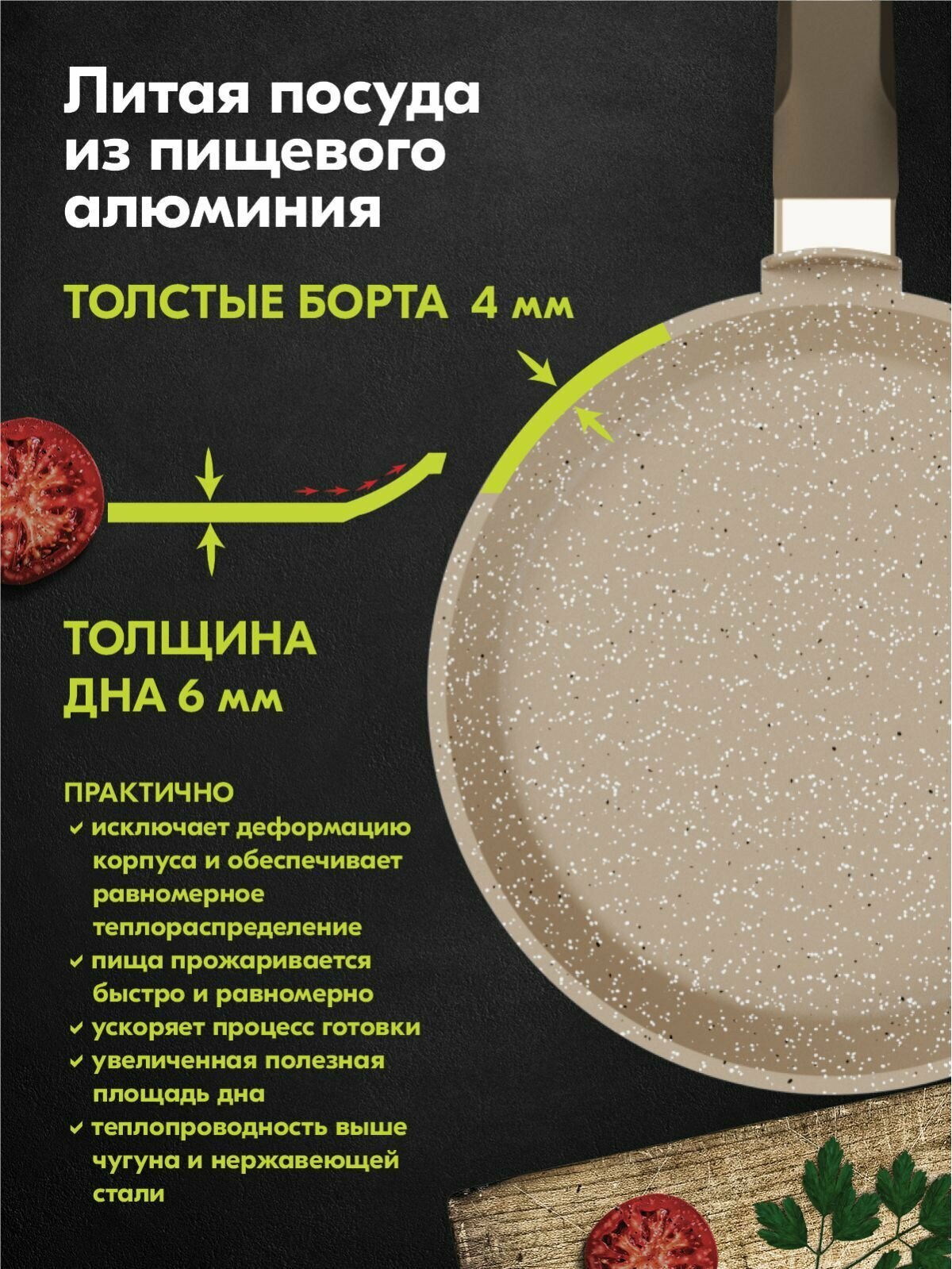 Сковорода для блинов Мечта Гранит Brown 14806 алюминий с гранитным антипригарным покрытием, диаметр 24см / блинница для газовых и электрических плит