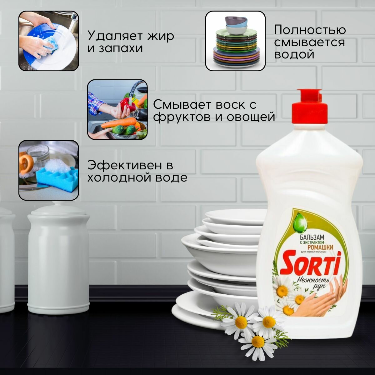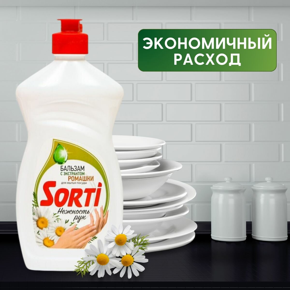 Средство(жидкость ) для мытья посуды SORTI (Капля Сорти) Бальзам с ромашкой