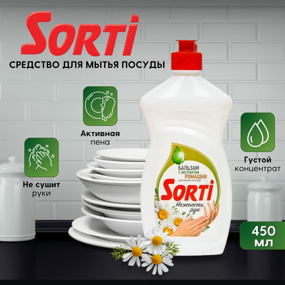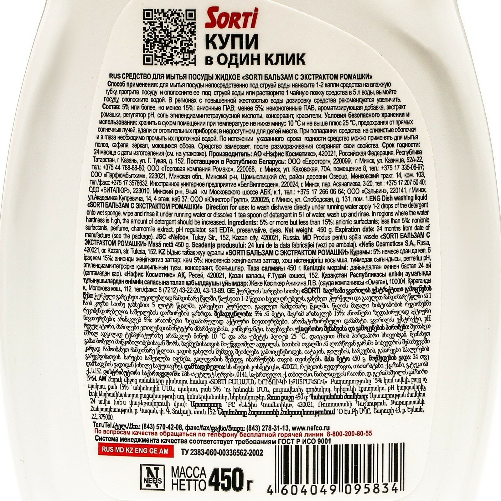 Купить Средство для мытья посуды Капля Сорти (Sorti) 450 мл Бальзам Ромашка