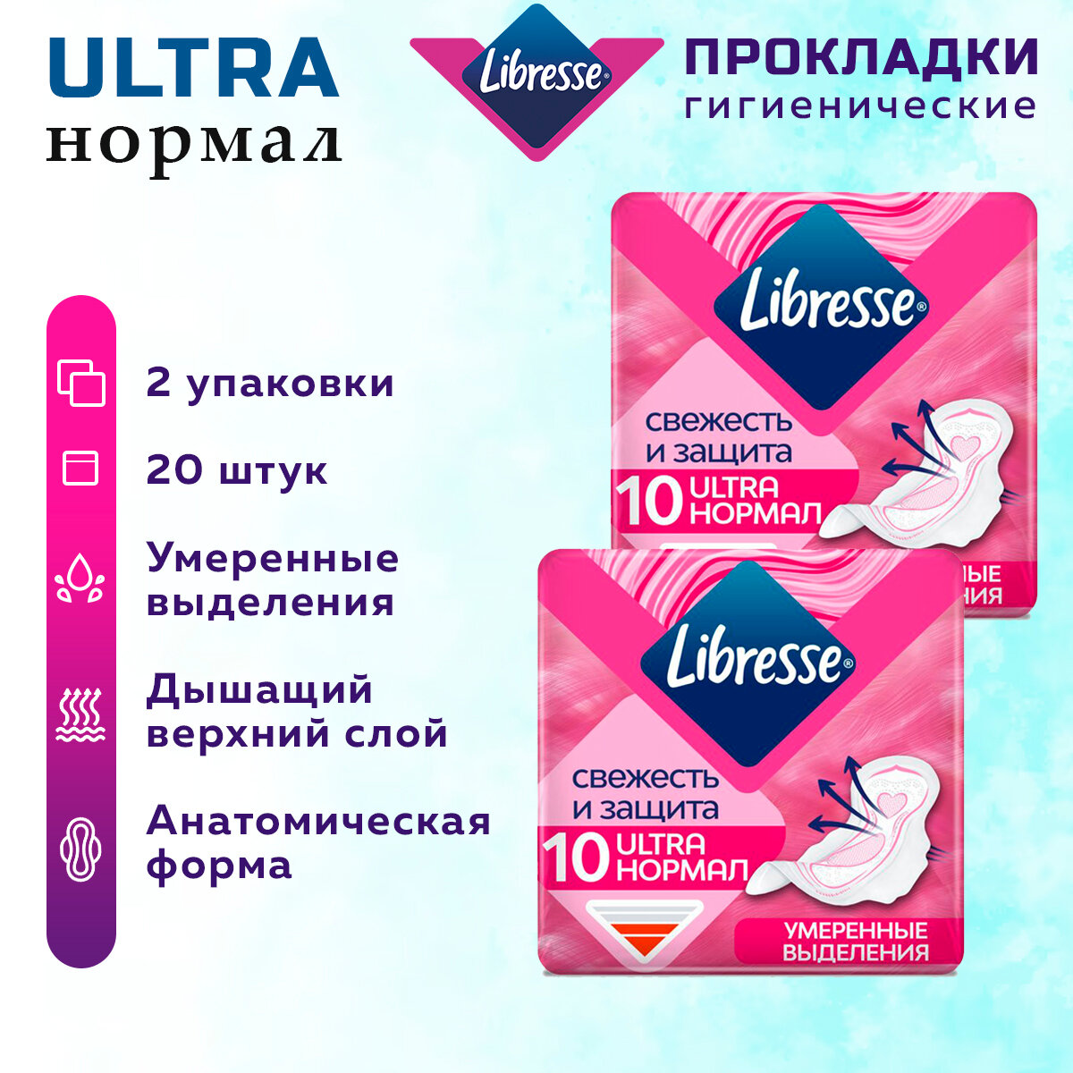 Libresse Прокладки гигиенические Ultra Normal, мягкая поверхность, 10 шт/уп, 2 уп