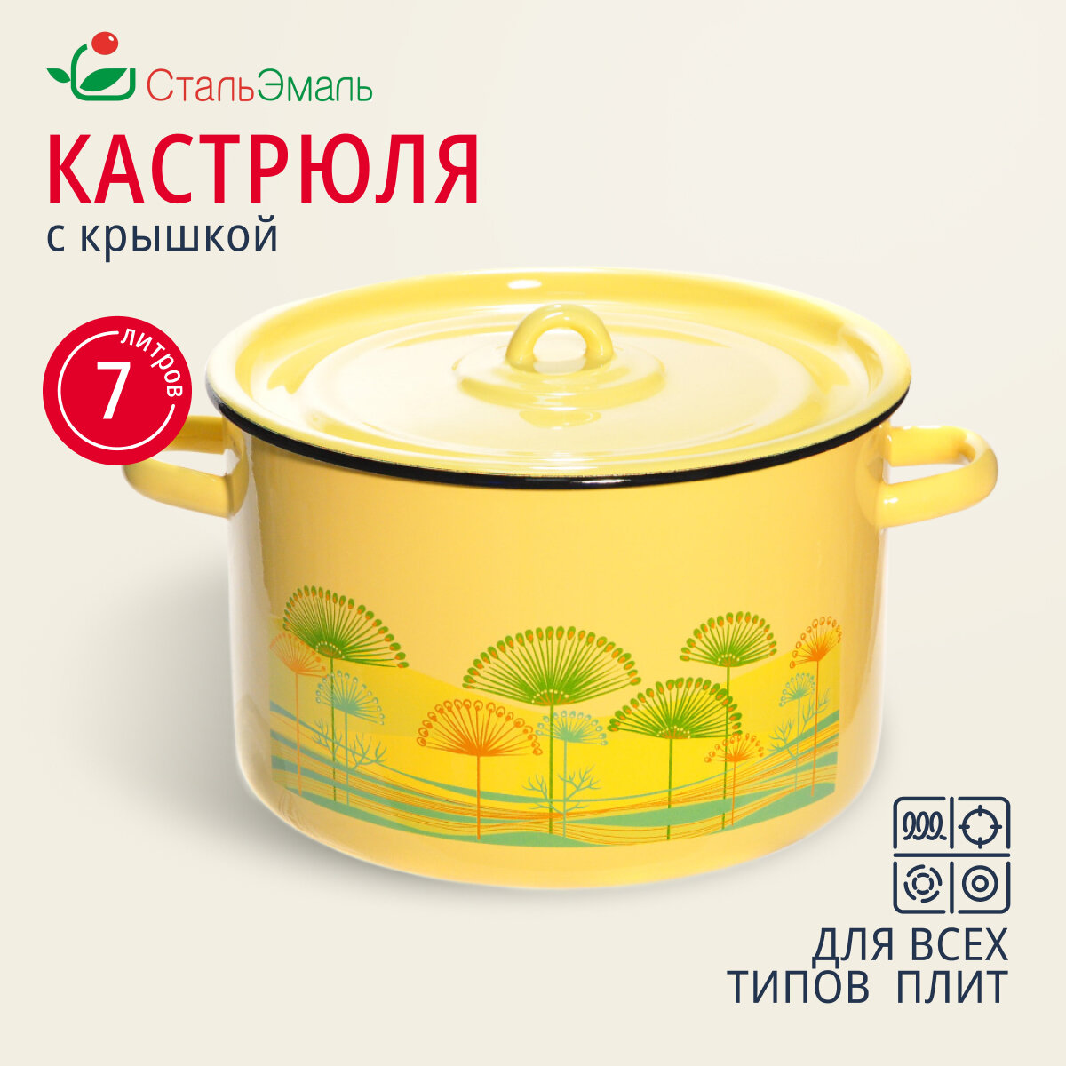 СохранитьКастрюля сталь, эмал, 7 л, с крыш, СтальЭмаль, 1с18с, в асс, индукц интересное: