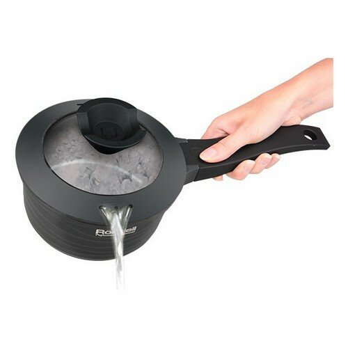 Удобные отверстия в крышке для слива воды, с двух сторон разные под разные задачи. Прорезиненная крышка ставится на ковш абсолютно бесшумно. Ничего не пригорает, не липнет, отмывается за секунды. |