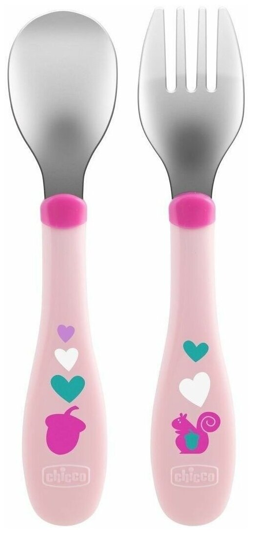 Купить Набор детских столовых металлических приборов Chicco Metal Cutlery ложка и вилка от 18 месяцев розовый