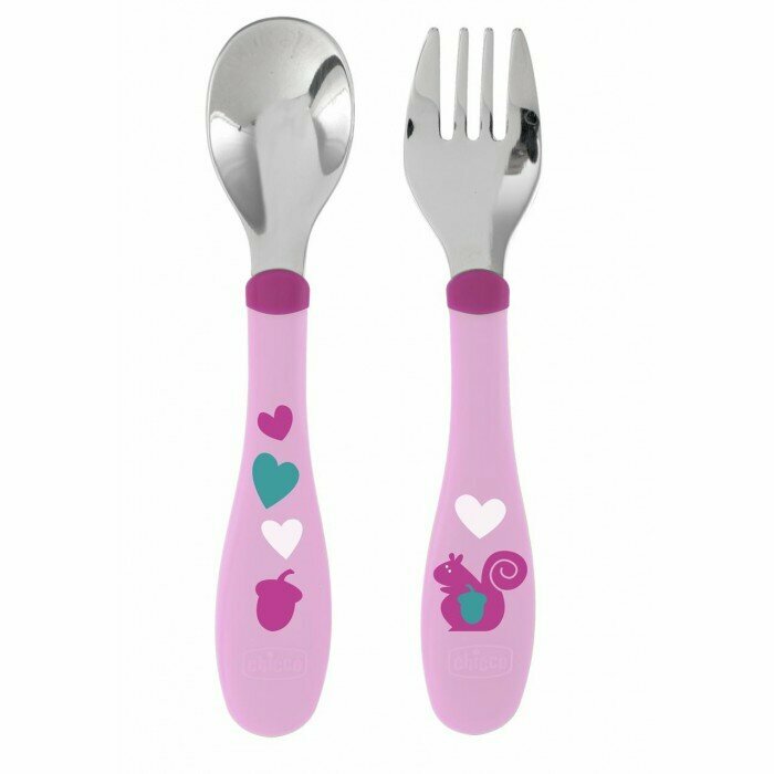 СохранитьНабор детских столовых металлических приборов Chicco Metal Cutlery ложка и вилка от 18 месяцев розовый интересное: