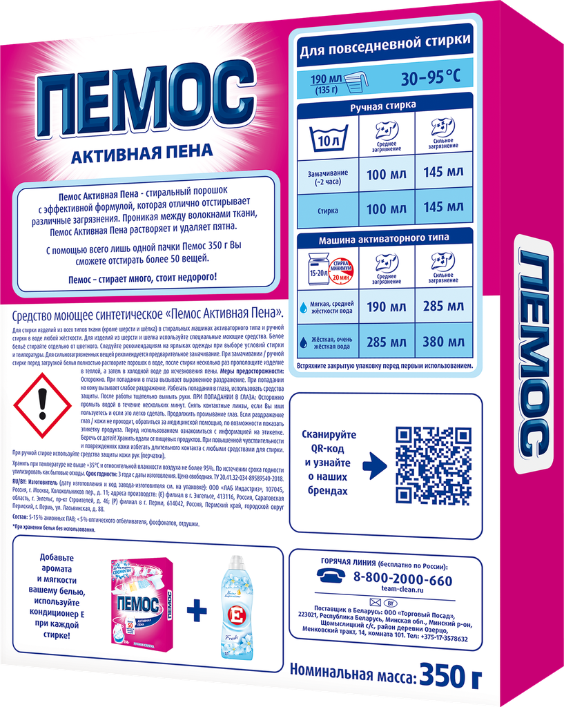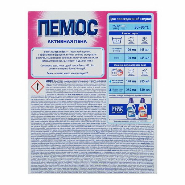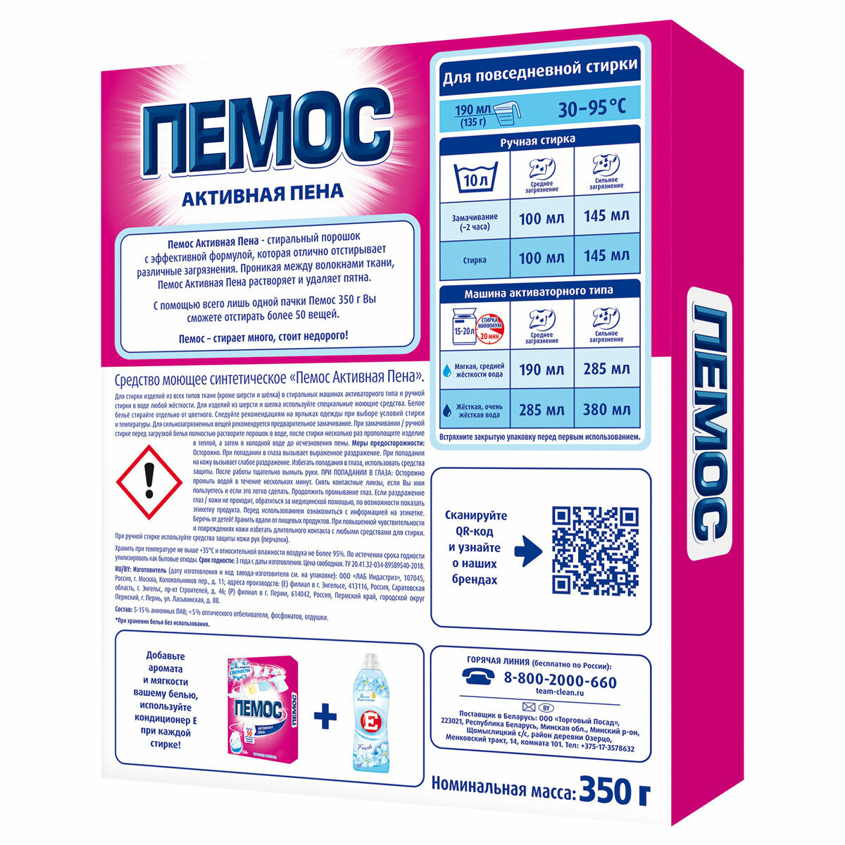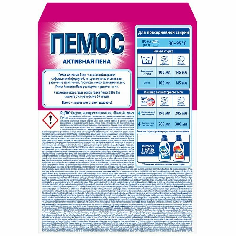 Купить Стиральный порошок для ручной стирки Пемос "Активная пена", 350г (9000100548113)