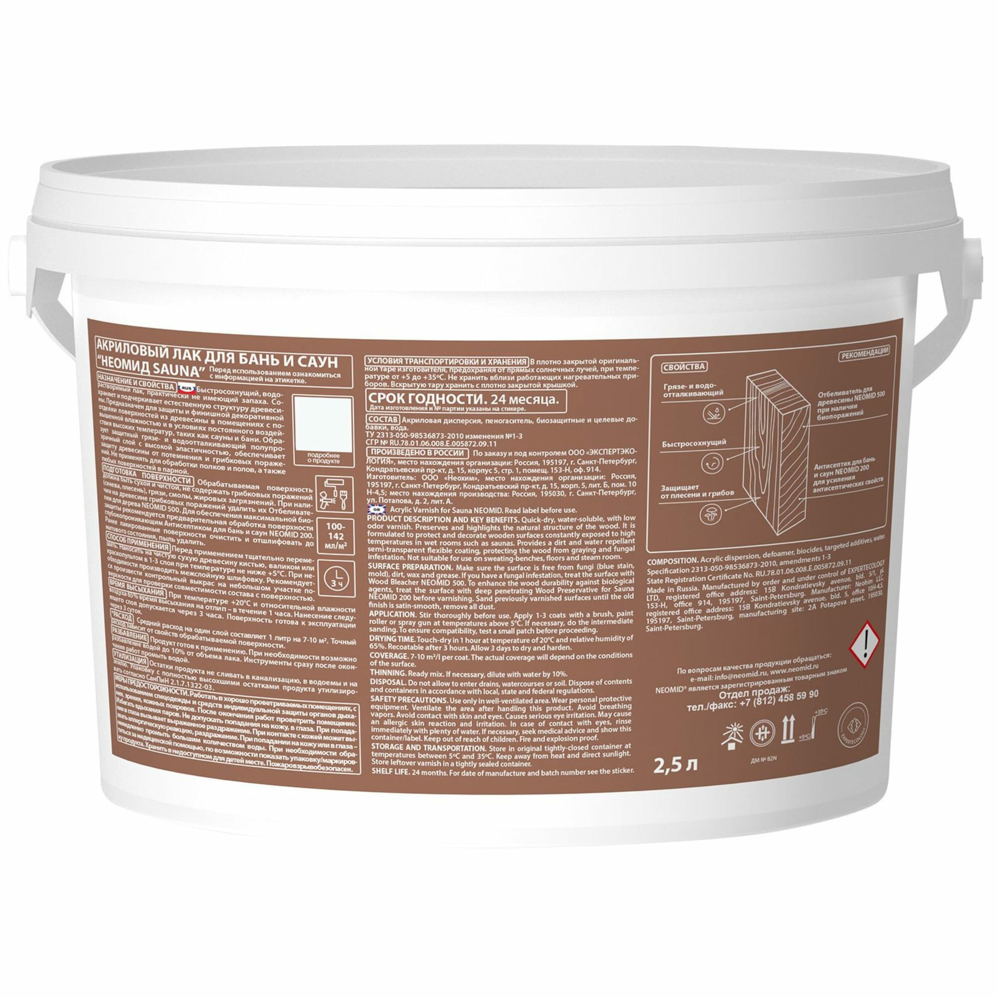 ЛАК для бань И саун NEOMID SAUNA, 2,5л до 25м2