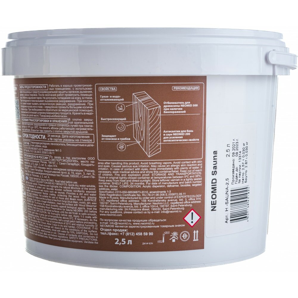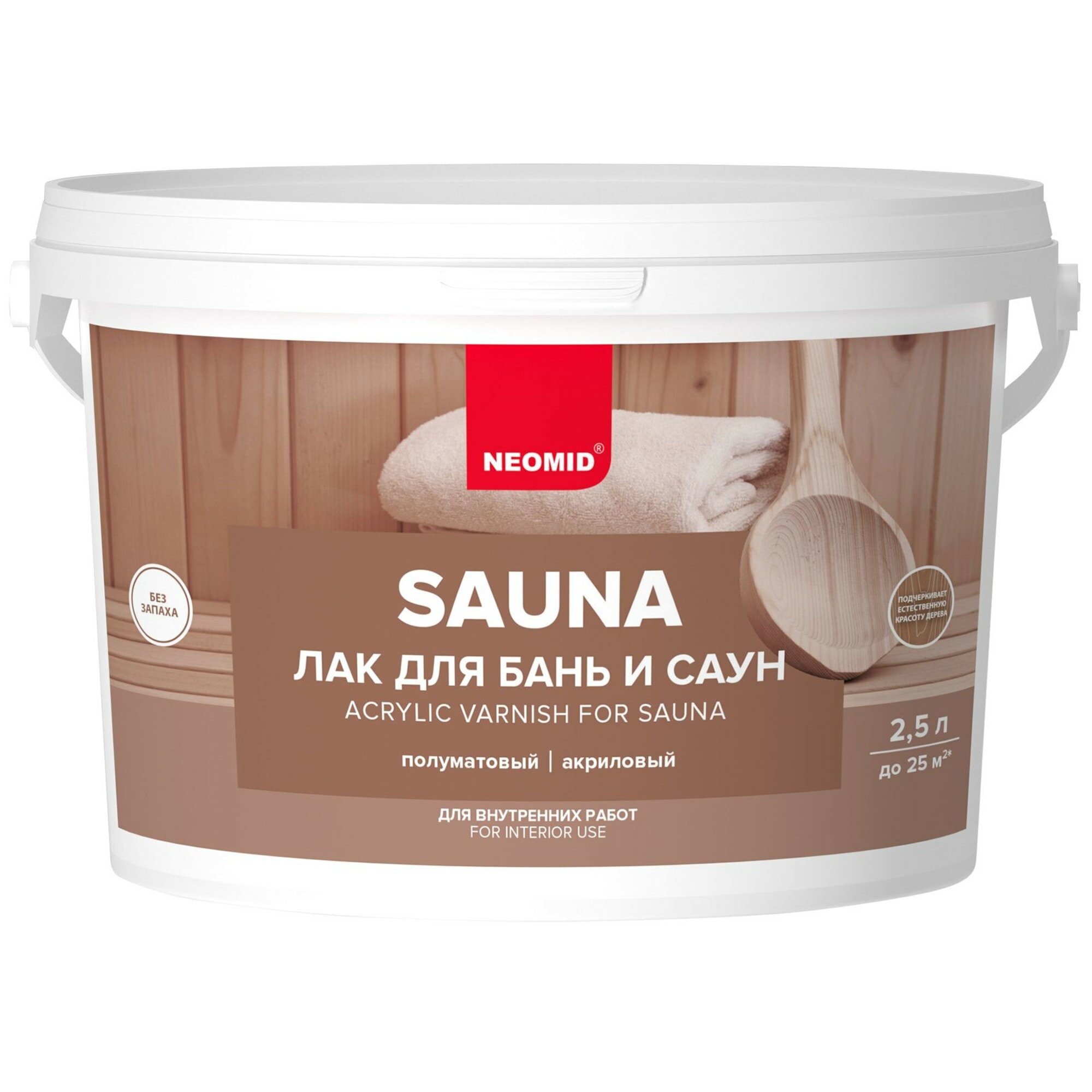 NEOMID (неомид) SAUNA Лак для бань и саун акриловый антисептический для внутренних работ Полуматовый, 2.5 л.