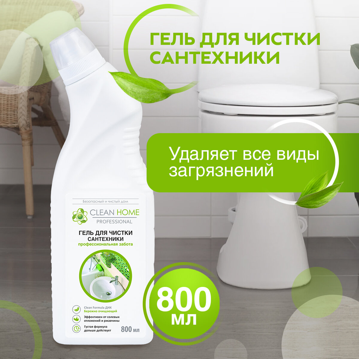 Гель CLEAN HOME для чистки сантехники 800мл