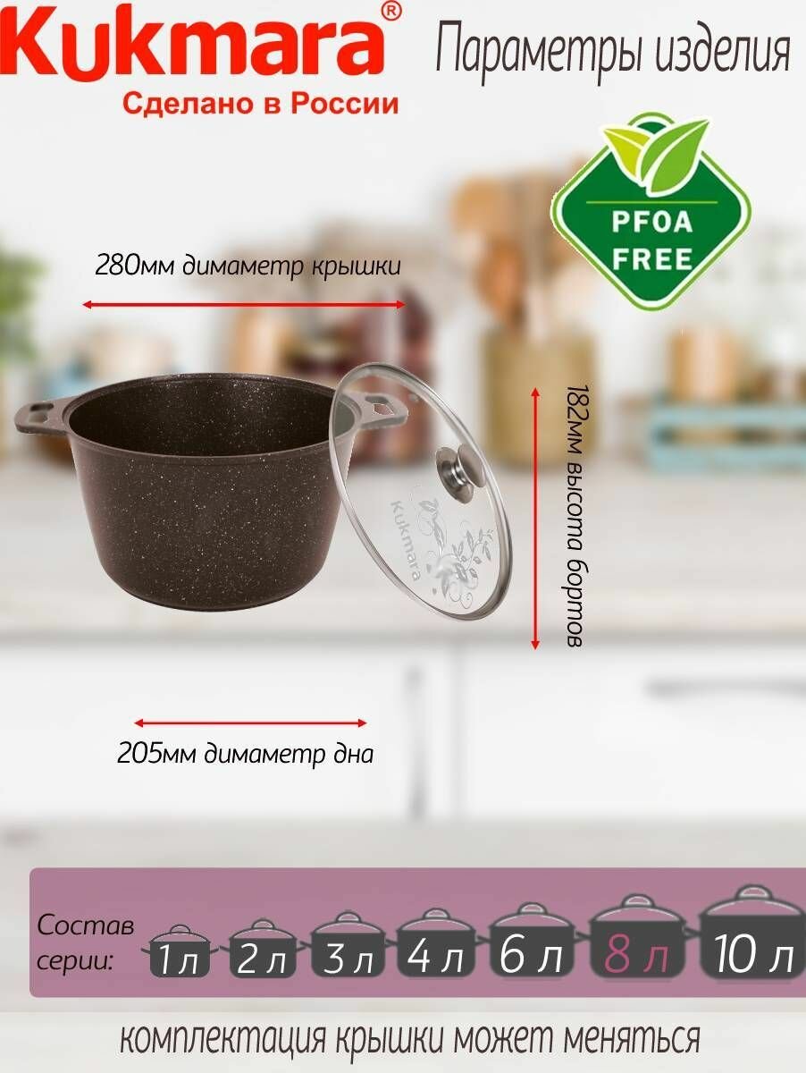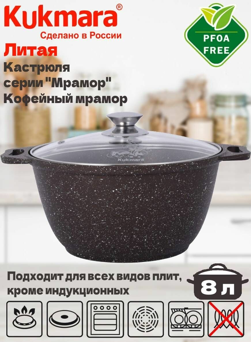 Кастрюля 8 л KUKMARA кмк82-1а, алюминий, кофейный мрамор
