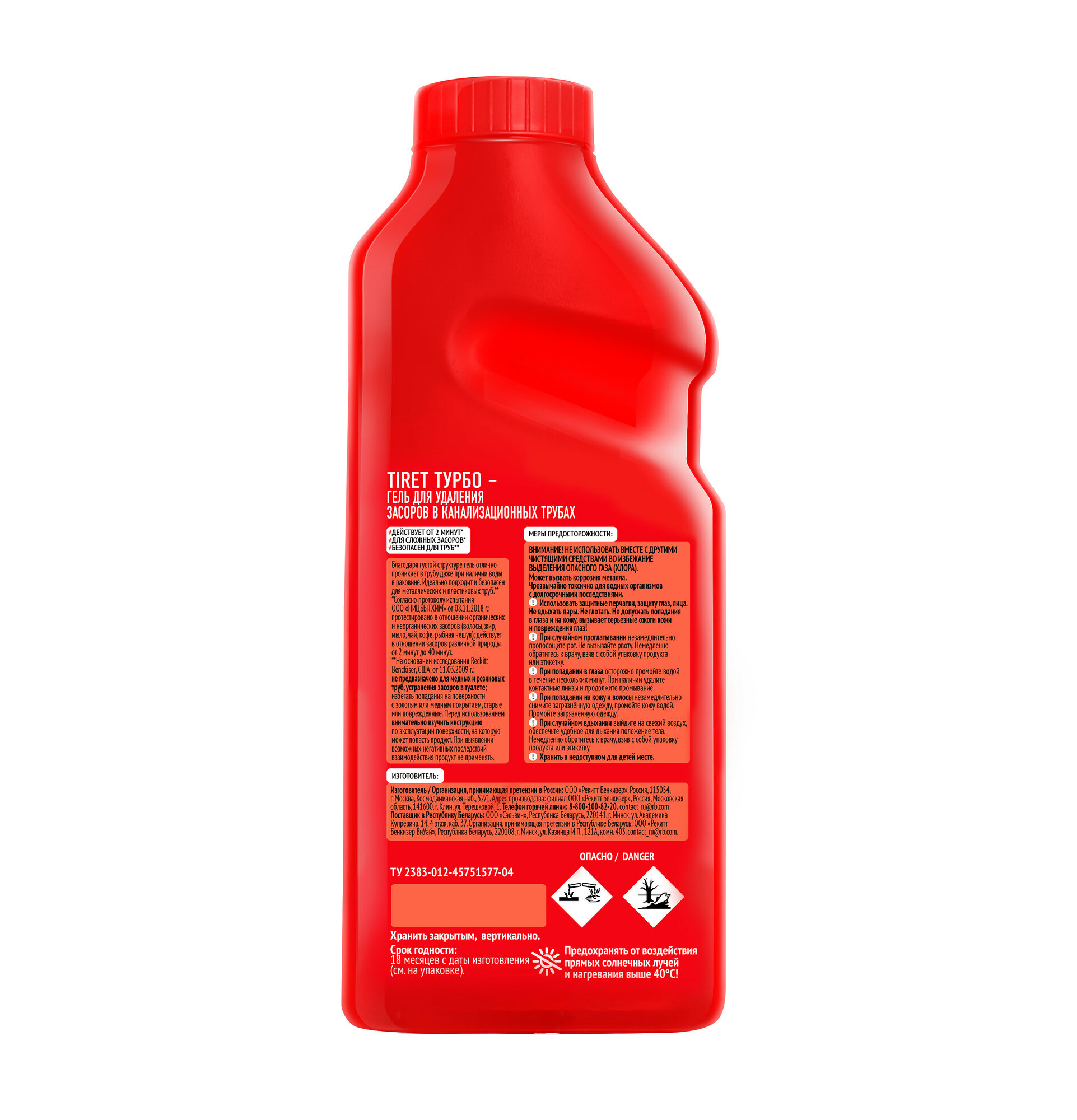 TIRET TURBO Гель для удаления засоров в канализационных трубах 500 мл.