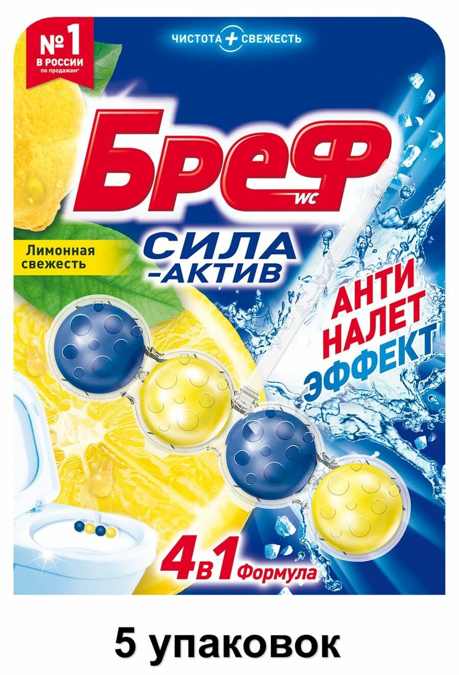 Купить Бреф Блок для унитаза "Сила-Актив" Лимонная свежесть, 50 г, 5 уп