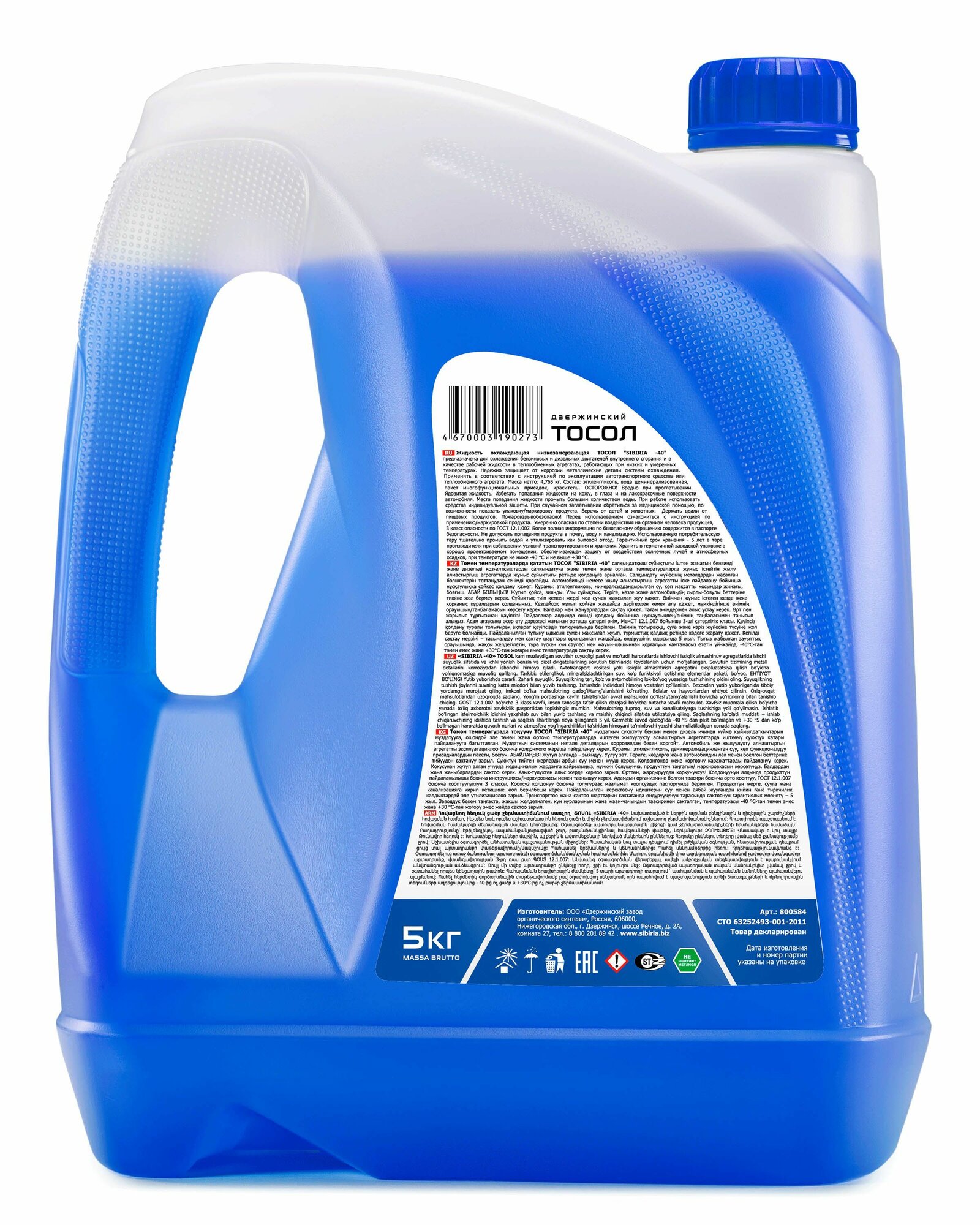 Тосол SIBIRIA Дзержинский (-40) синий 5 кг