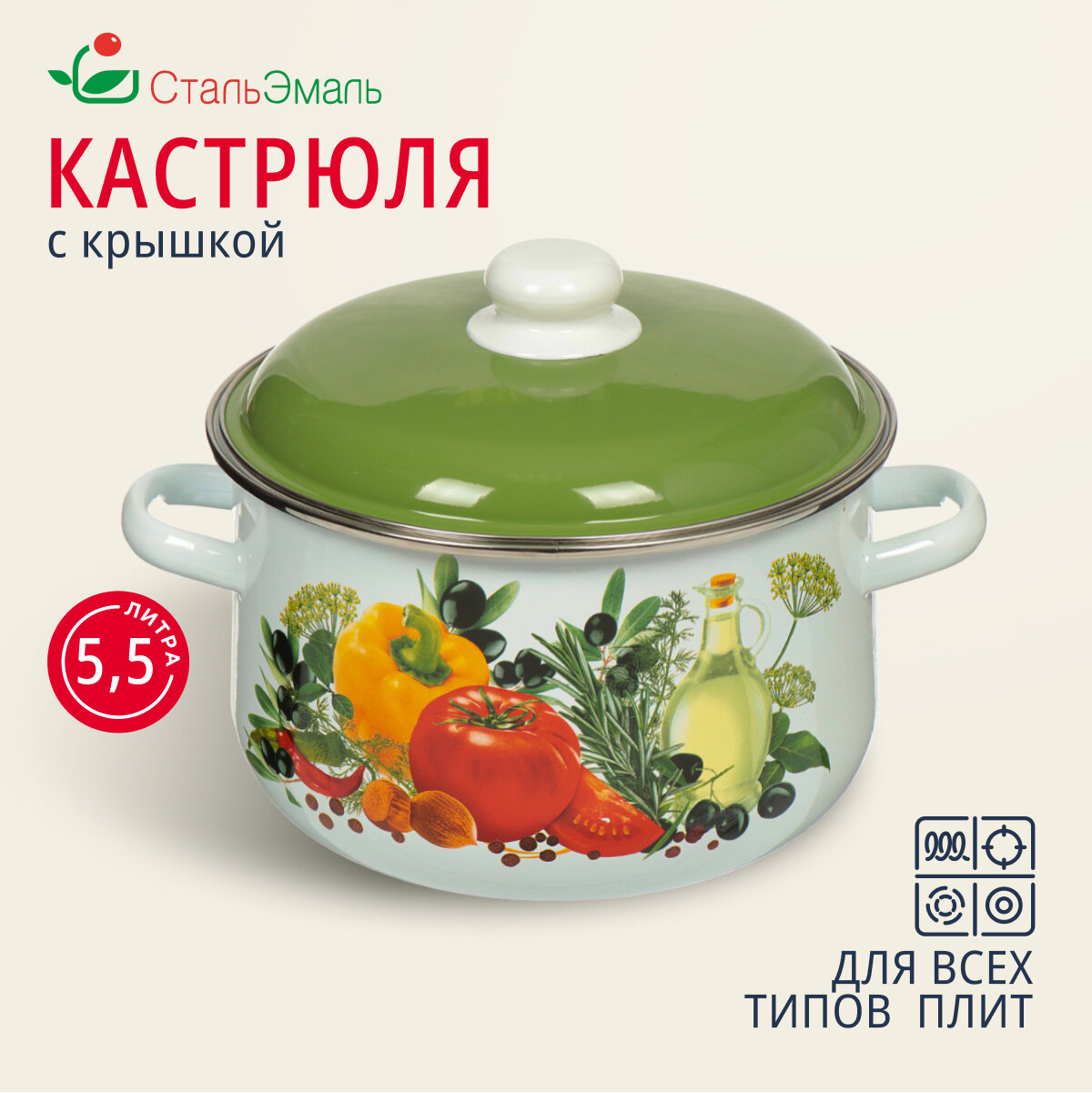 Купить Кастрюля эмалированная 5,5 литра с крышкой для индукционной плиты, СтальЭмаль