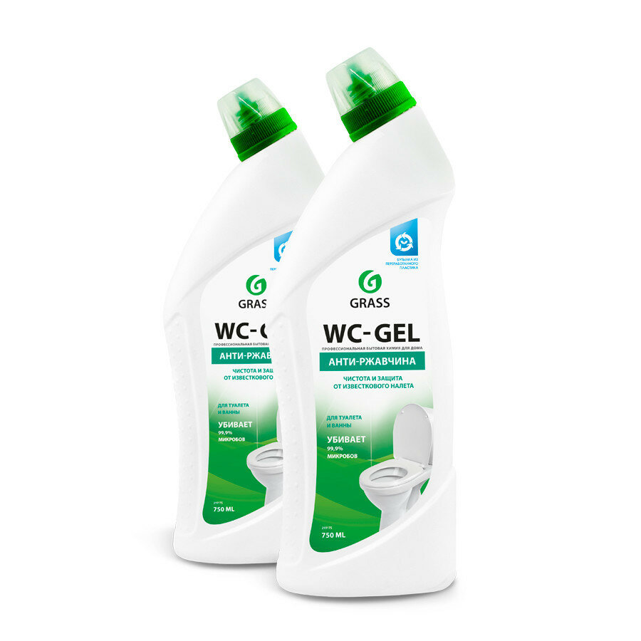 Купить Grass Средство чистящее "WC-GEL" для чистки унитазов, кафеля, фаянса, Кислотное, 750 мл, 2 шт