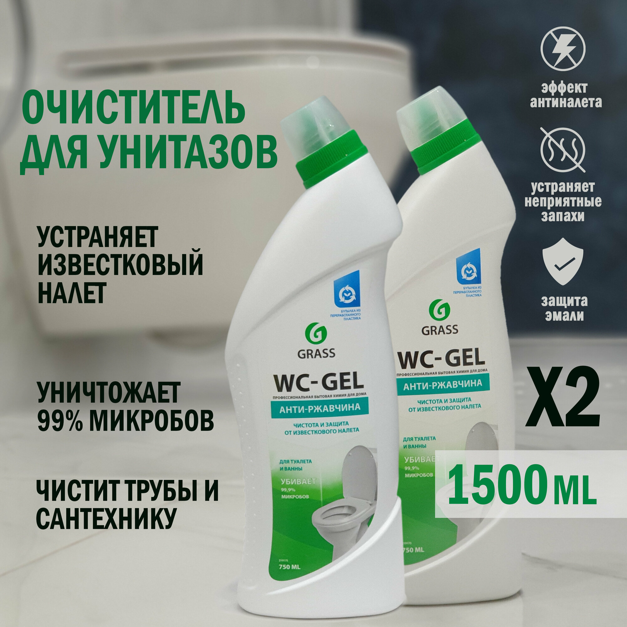 Средство GraSS WC- Gel Анти-ржавчина для чистки сантехники 750 мл 2шт 219175/набор