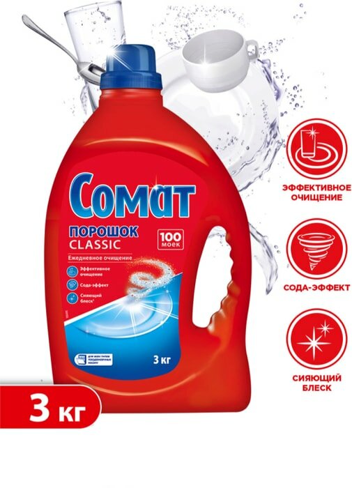 Порошок для мытья посуды в посудомоечных машинах 3 кг сомат Classic, 2355013 В комплекте: 1шт.