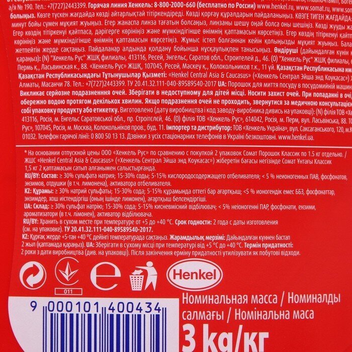 СохранитьПорошок для посудомоечных машин Somat Standart, 3 кг 4302183 интересное: