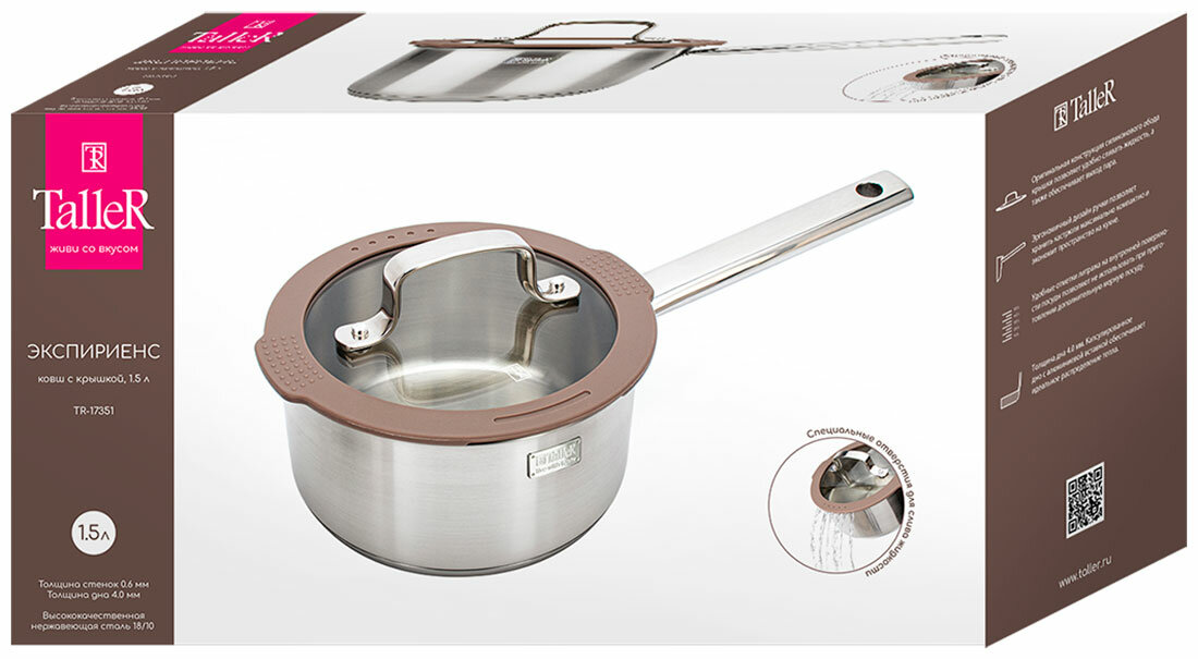 Ковш TALLER TR-17191, 1.5л, с крышкой, стальной