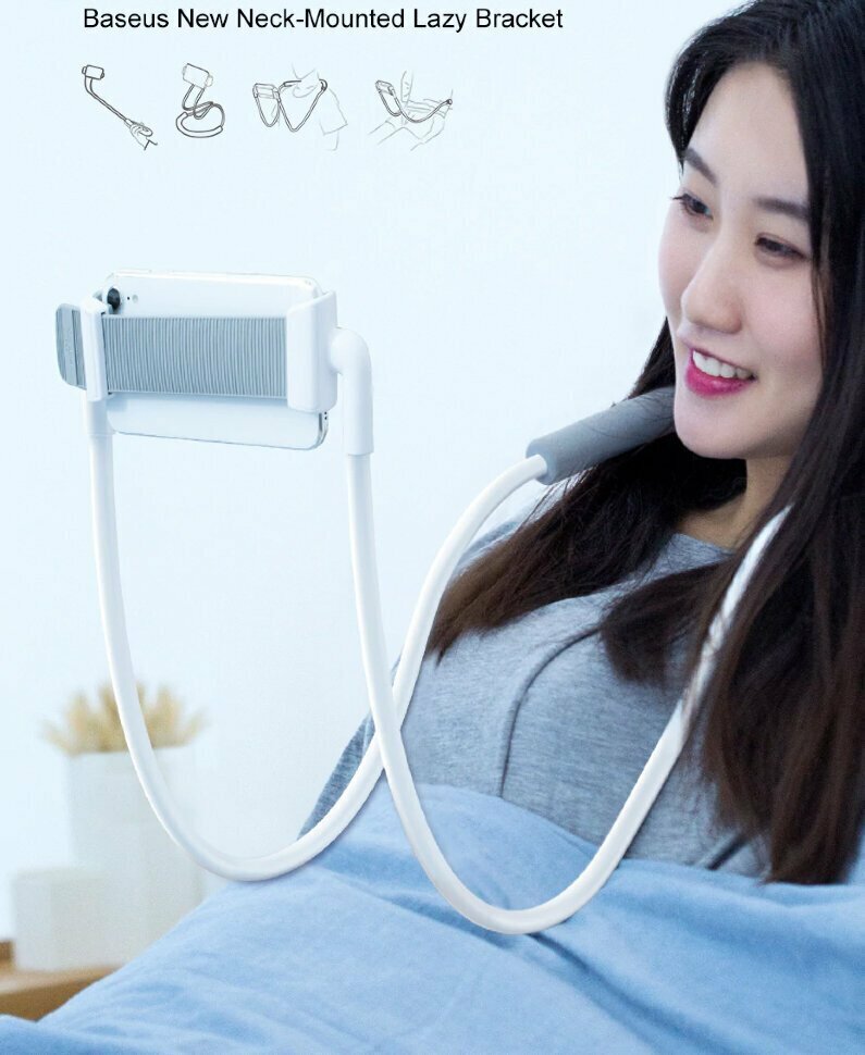 Настольный держатель BASEUS Neck-Mounted Lazy Bracket, на шею, белый интересное: