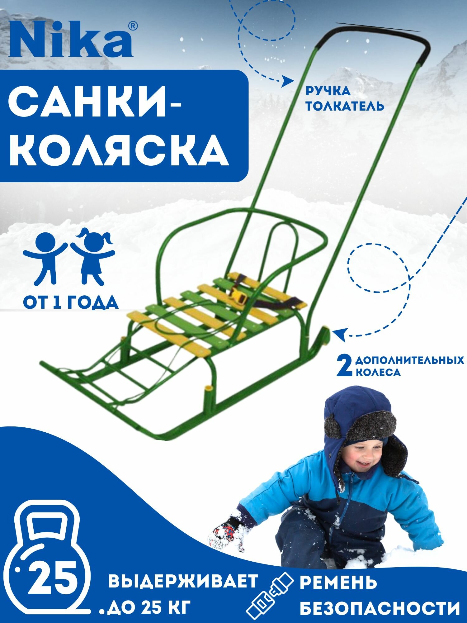 Санки Тимка 5 Комфорт, Т5К/Г2, переставная ручка, ремень безопасности, колеса на полозьях, 25 кг, спинка, Nika