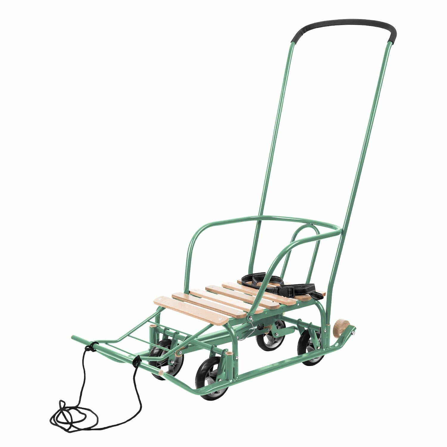 Санки детские Nika "Тимка 5 универсал", съемная ручка, выдвижные колеса, зеленый