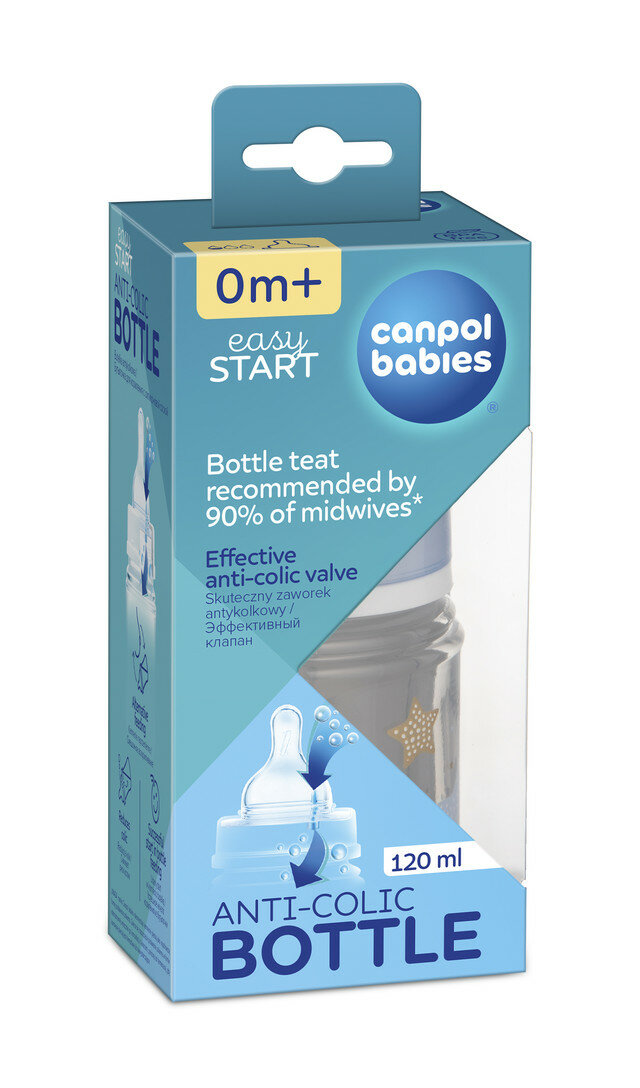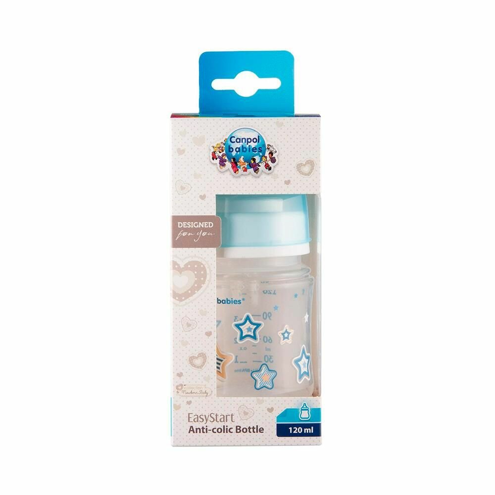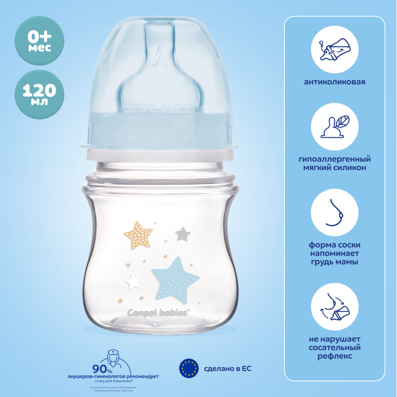 Canpol Babies Бутылочка антиколиковая с широким горлом EasyStart Newborn Baby 120 мл, с рождения, голубая звезда
