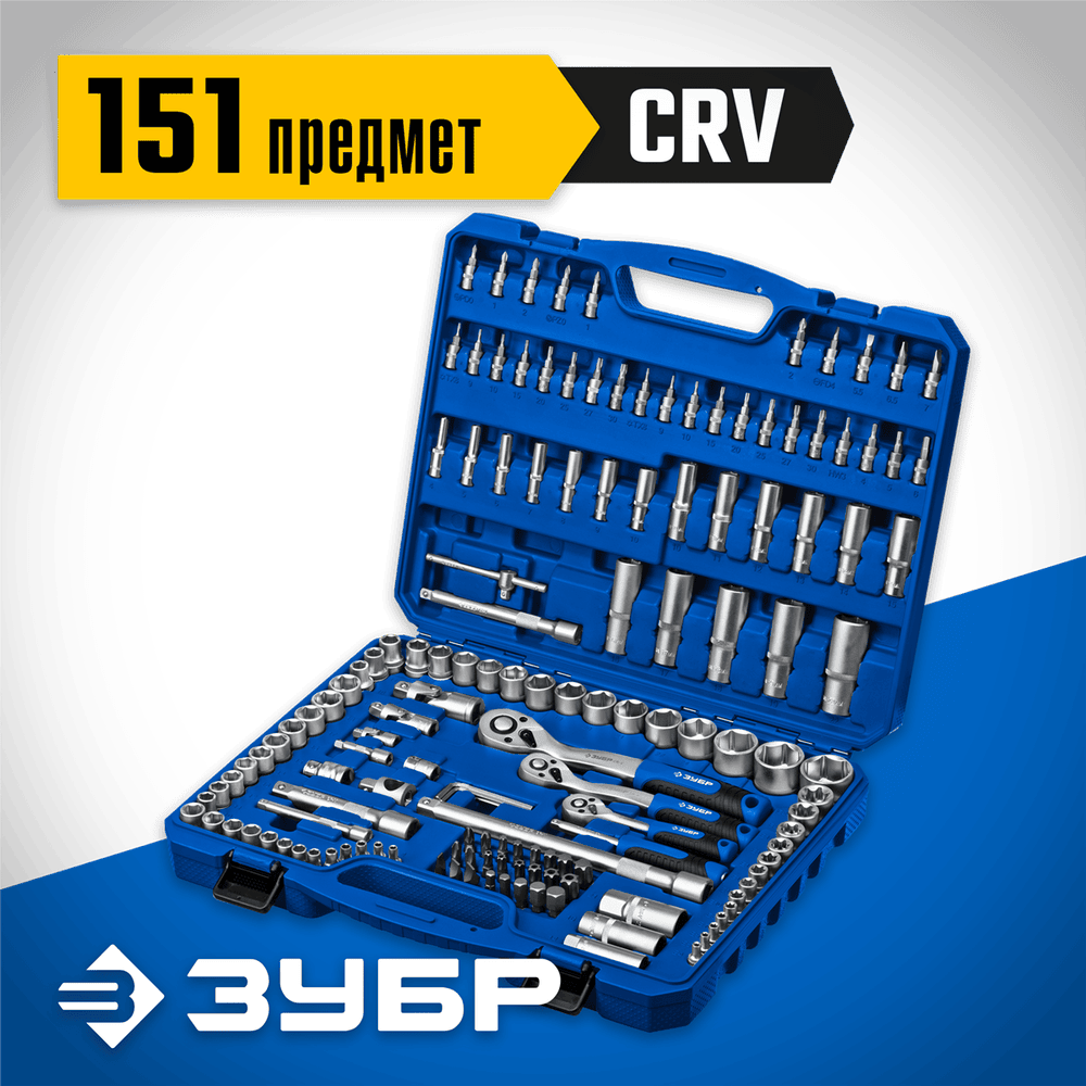СохранитьЗУБР А-150, 151 предм., (1/2"+ 3/8"+ 1/4"), универсальный набор инструмента, Профессионал (27637-H150_z01) интересное:
