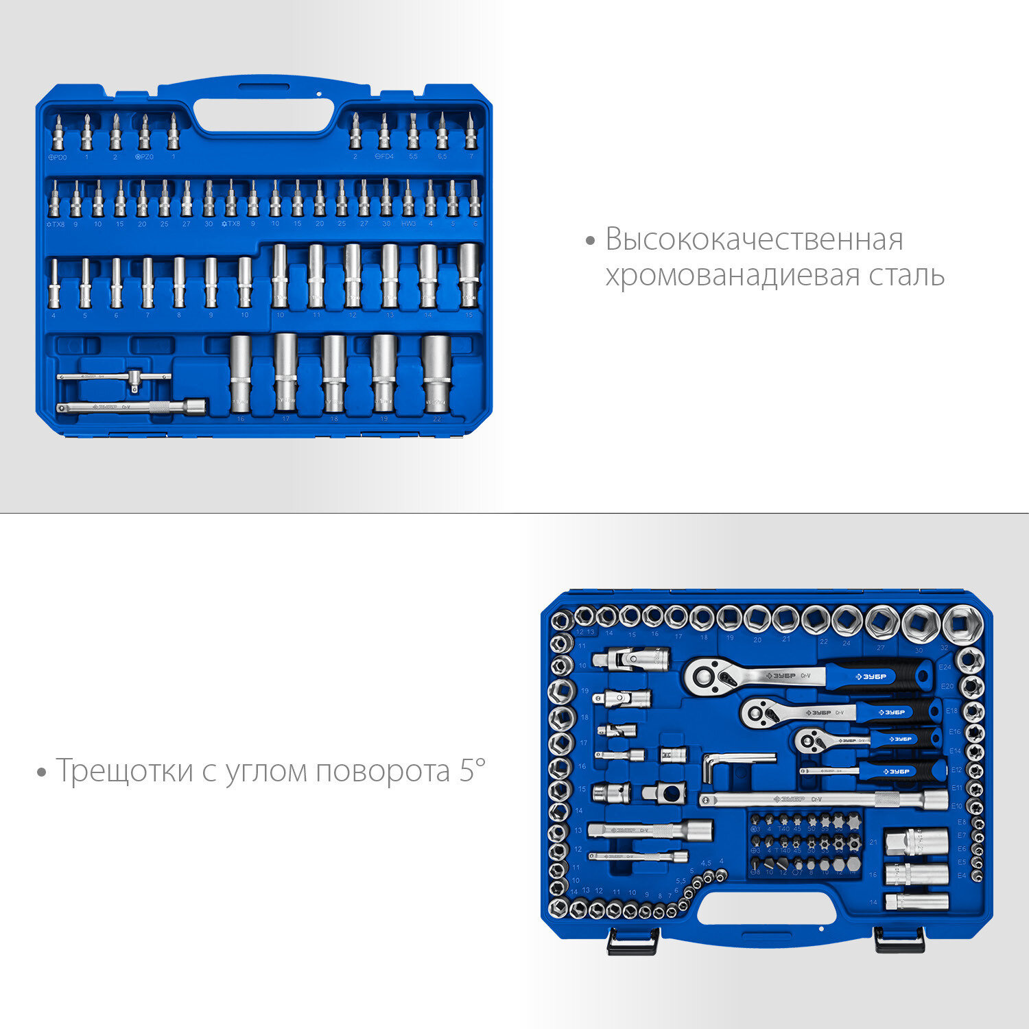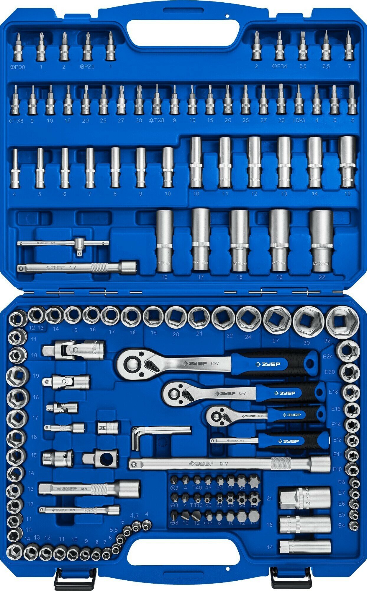 ЗУБР А-150, 150 предм., (1/2″+ 3/8″+ 1/4″), универсальный набор инструмента, Профессионал (27637-H150)