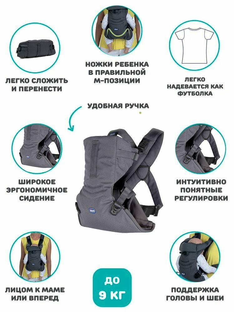 Рюкзак переноска детская Chicco EASYFIT Эргорюкзак кенгуру для детей, слинг для новорожденных,, от 0+ до 9 кг, серый