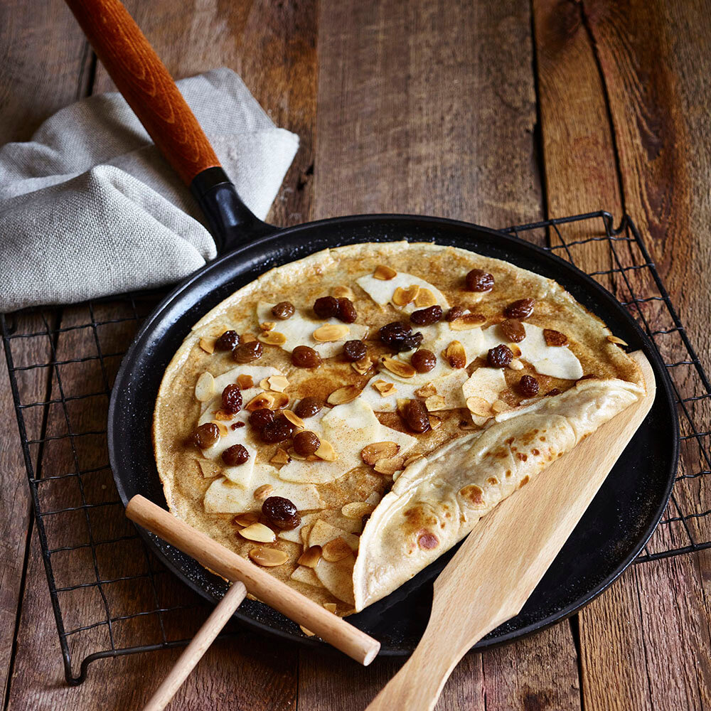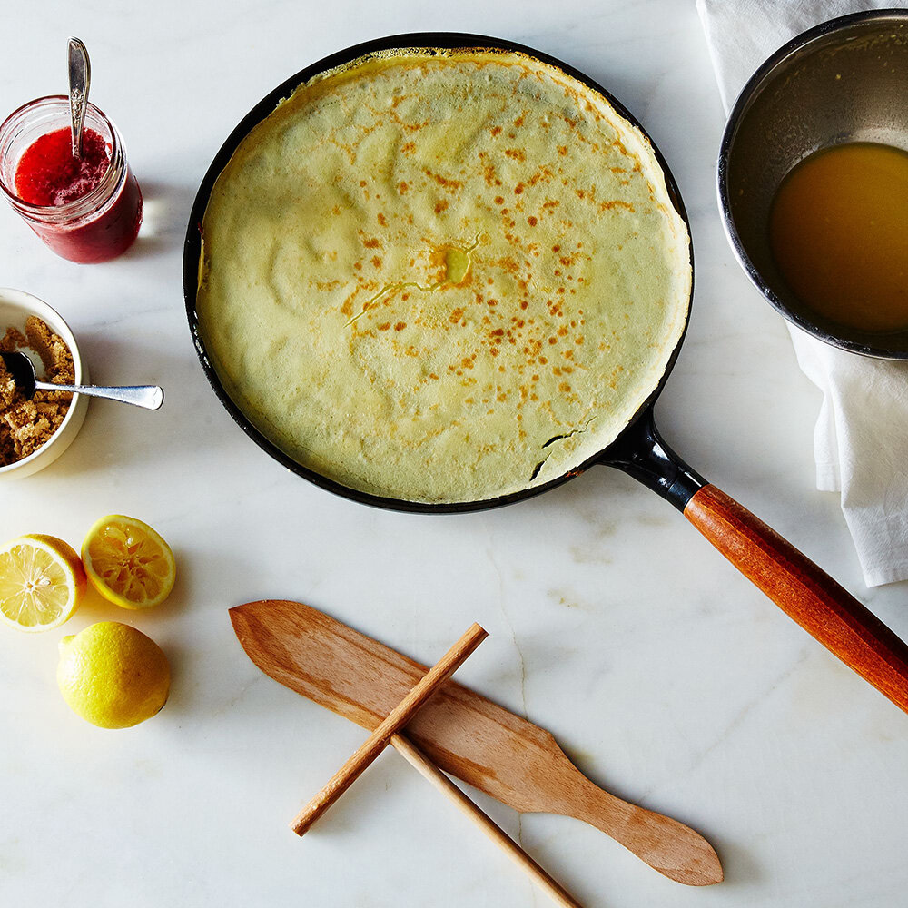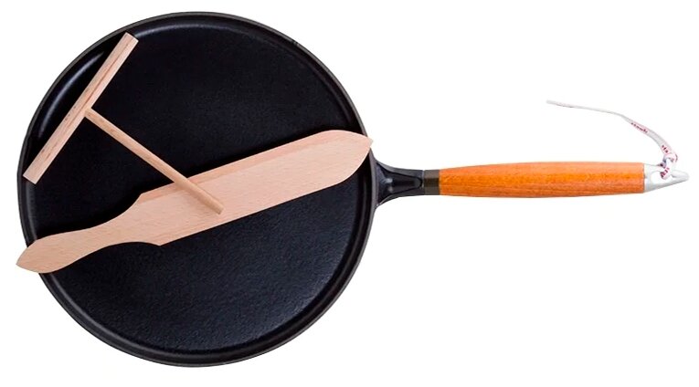 Сковорода для блинов с деревянной ручкой, 28 см, с приспособлением для размазывания теста и лопаткой Staub