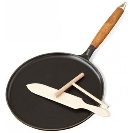 Staub Сковорода для блинов с деревянной ручкой, 28 см, с приспособлением для размазывания теста и лопаткой 1212823 Staub