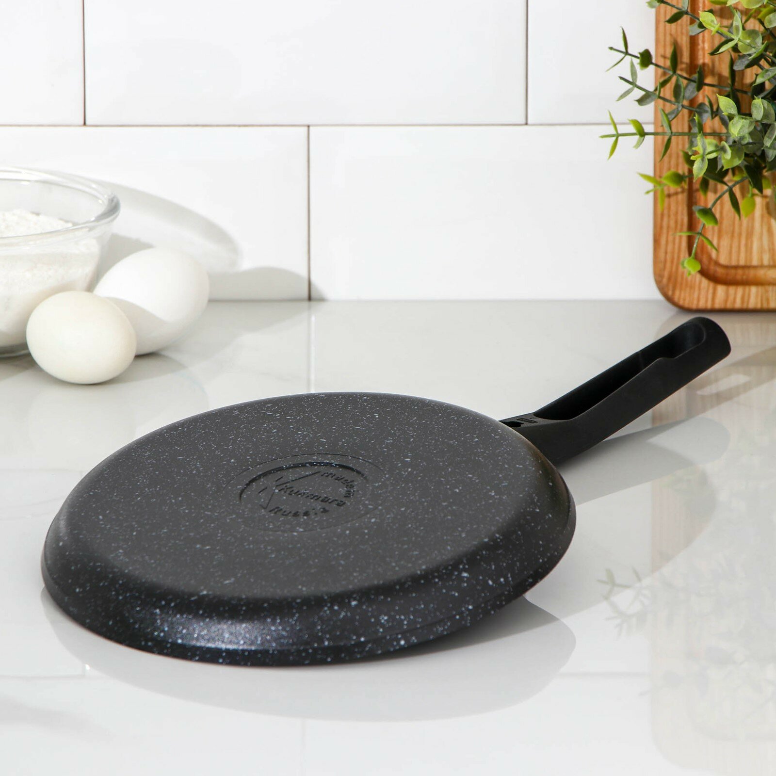 Сковорода блинная Kukmara 24 см, съемная ручка, темный мрамор (сбмт240-1а)
