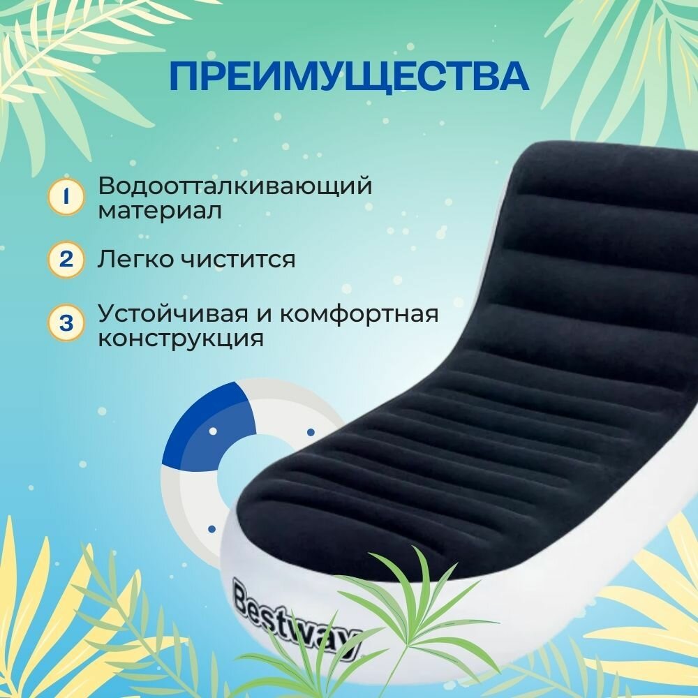 75064 Надувной шезлонг Chaise Sport Lounger 165х84х79 см Bestway интересное: