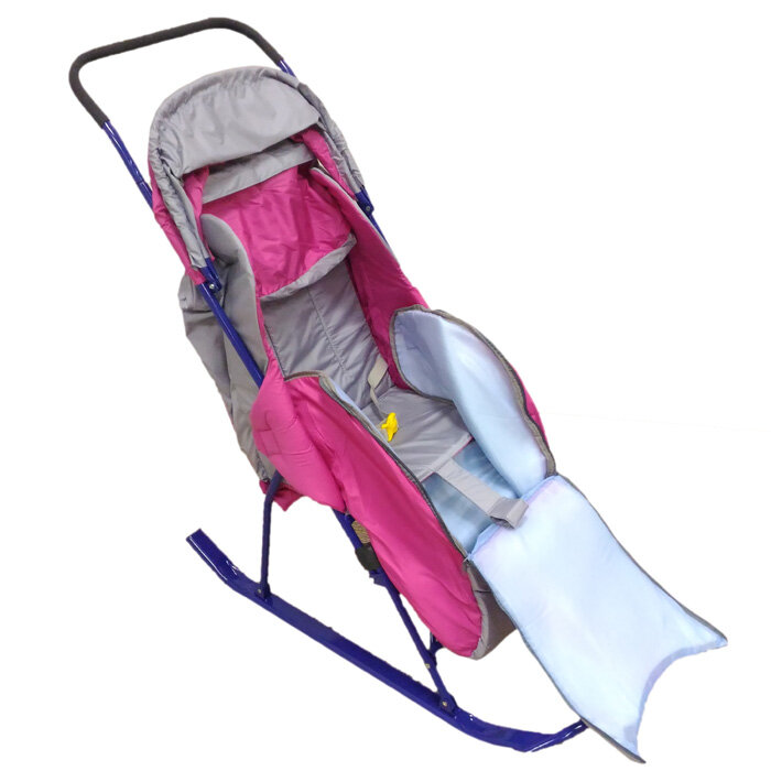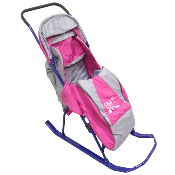 Санки-коляска Снежинка (розовый-серый) интересное: