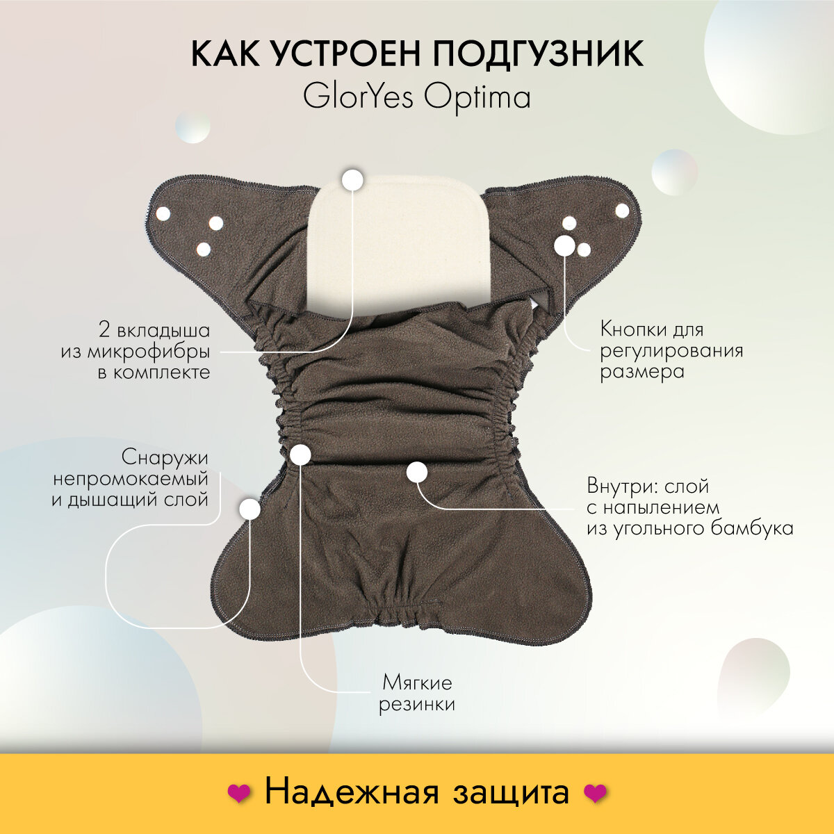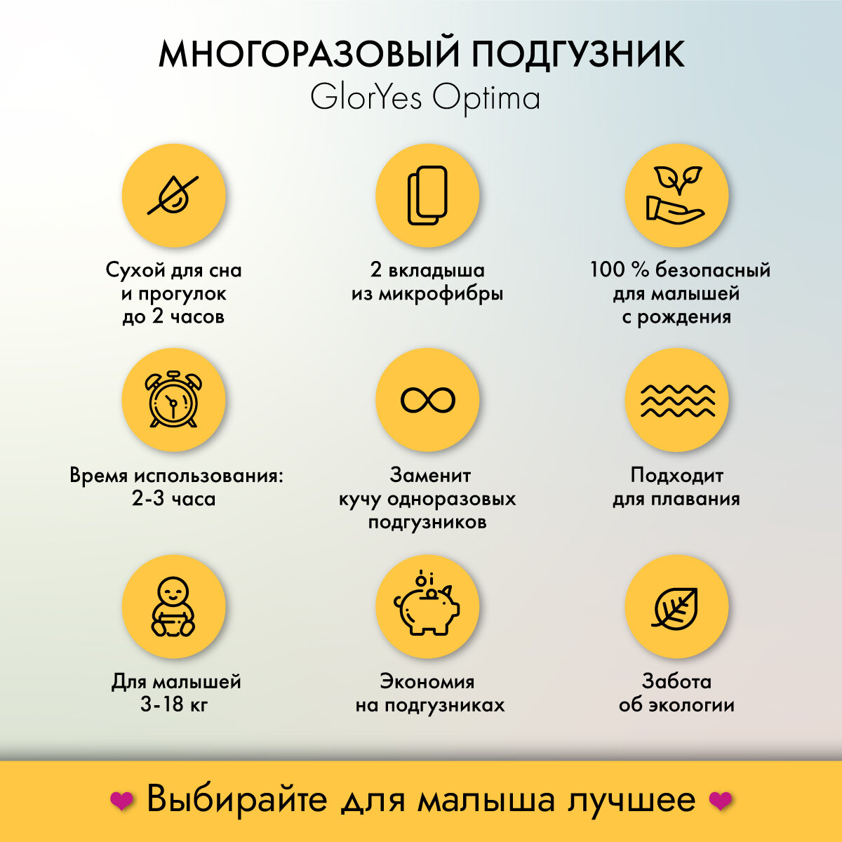 Многоразовый подгузник GlorYes! OPTIMA Синий 3-18 кг + два вкладыша интересное: