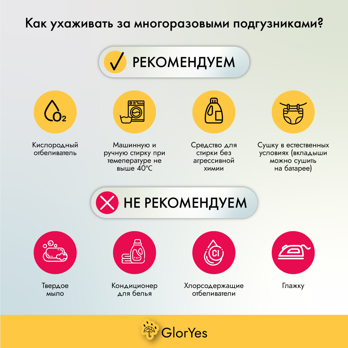 | Отзыв: | В сравнении с другими марками многоразовых подгузников фирма GlorYes явно выделяется и имеет преимущество |