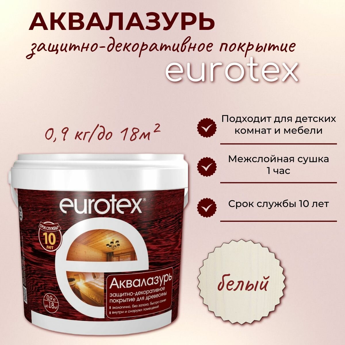 Защитно-декоративное покрытие EUROTEX аквалазурь (белый / 0.9кг)
