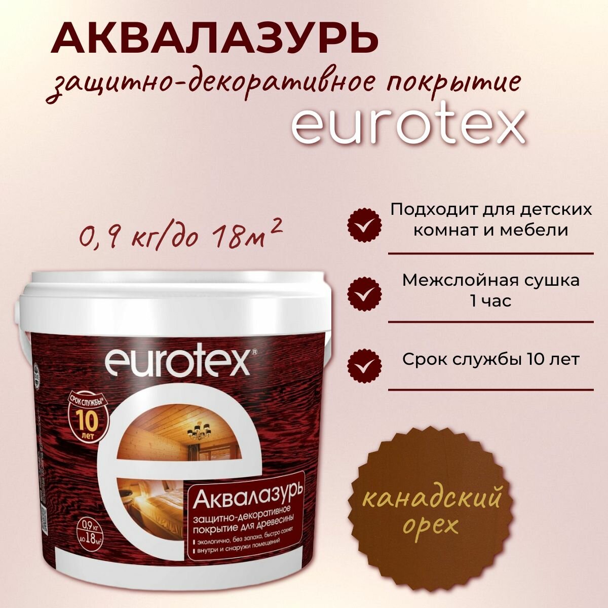 Купить Аквалазурь EUROTEX защитно-декоративное покрытие для дерева, Канадский орех 0,9кг